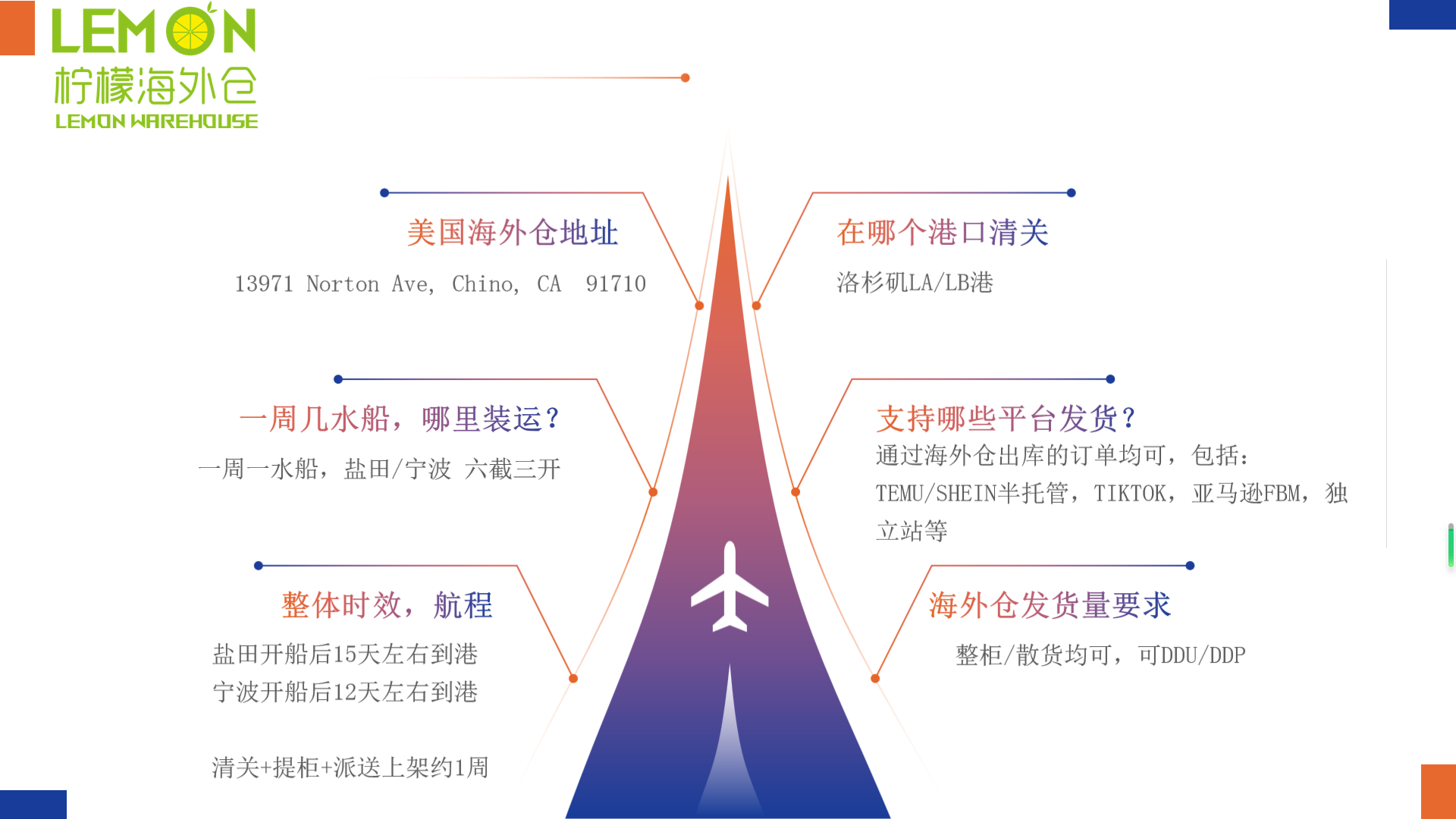 LEMON 柠檬海外仓在洛杉矶、纽约各设有超十万尺仓库,开设海外仓一件代发、仓储、拆送,清关等服务,配套OMS管理系统,公司自有尾程派送账号,48h极速出仓,每个仓库日均稳定代发20000单以上,为客户提供更高效的美国本土物流派送服务。